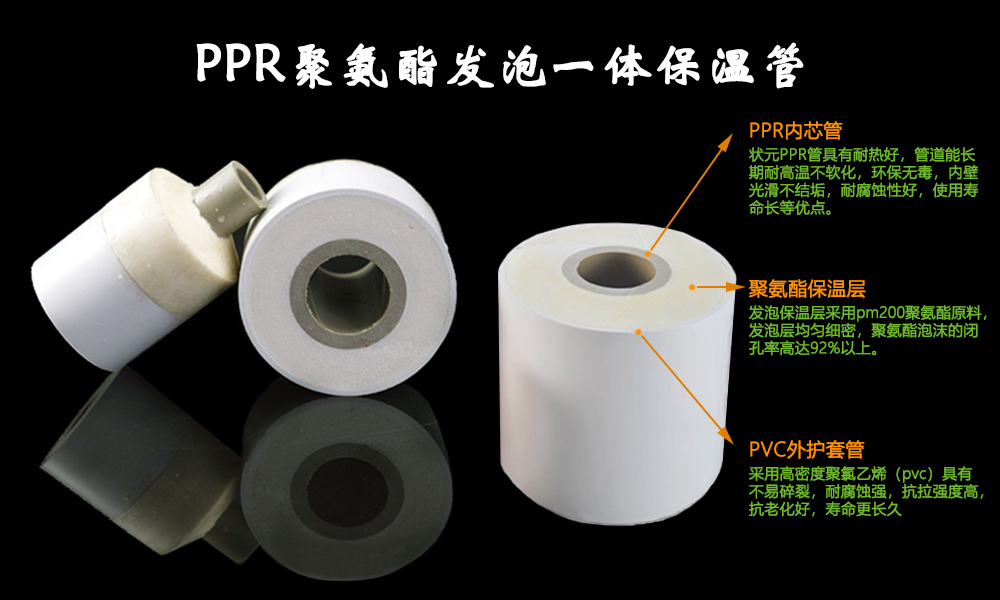 新型PPR保溫管采用聯(lián)塑PPR熱水內(nèi)芯管+聚氨酯發(fā)泡保溫層+PVC(PE)外套保護(hù)層,三層緊密閉合,中間無(wú)縫隙、無(wú)空氣層,保溫效果極優(yōu)。